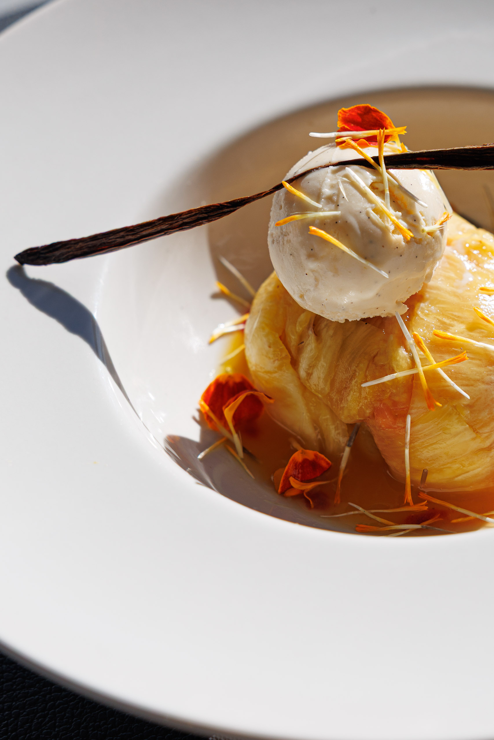 Ici, le Chef Romain Dumas cueille lui-même fleurs, herbes et plantes sauvages dans la nature environnante pour sublimer ses plats. Et ça se ressent : chaque assiette a une âme, une précision, une identité bien à elle.